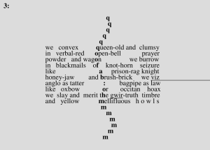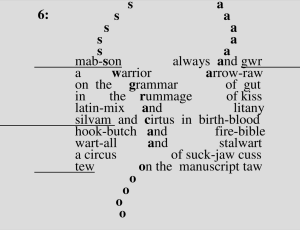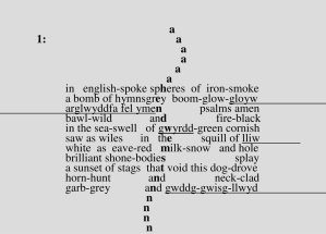 They are based on Guest’s translation and a Middle Welsh manuscript of Y Mabinogi using ‘phonetic transliteration, or what Zukofsky called ‘broken homonyms’.